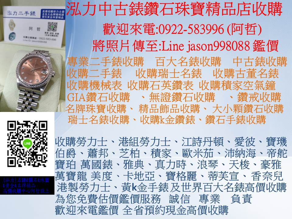 全省高價收購專線:0922583996   阿哲   泓力二手錶鑽石珠寶收購